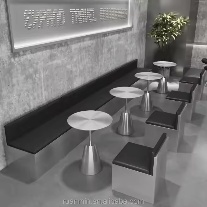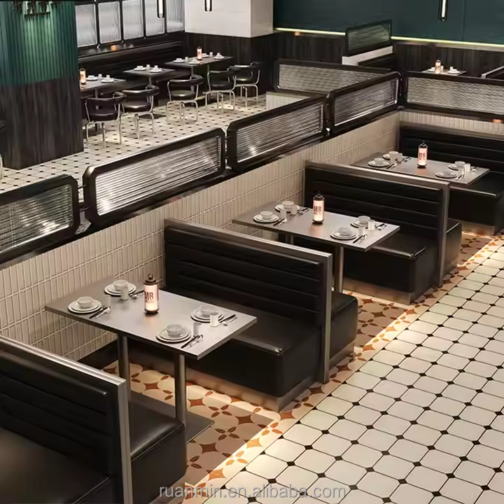 Ristorante su misura panca senza schienale stile industriale Coffee Shop tavolo da pranzo e sedia a muro nero stand sofà set