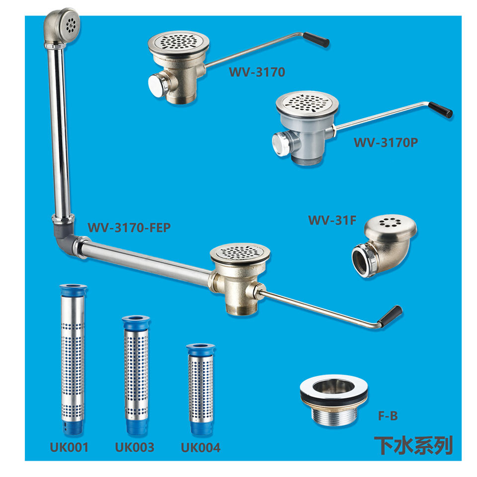 Sistema di scarico del lavello della cucina del ristorante, valvola di scarico della maniglia di leva/torsione, materiale in ottone, apertura da 3.5 ", nessun intasamento