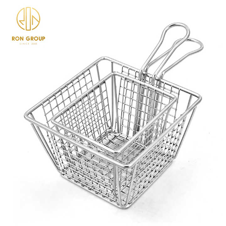 Ristorante rete metallica in acciaio inox che serve Mini metallo argento quadrato friggitrice cestino patatine fritte pane snack cestini rete