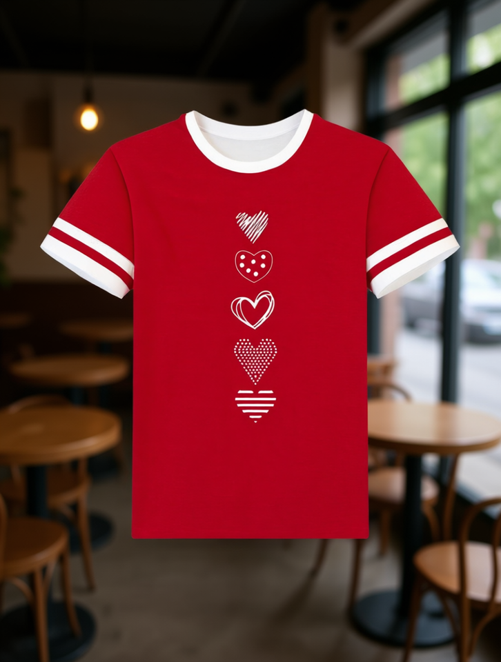 Resyla Women's Round Neck T-Shirt Short Sleeve Heart Print Casual Daily Wear 100% Cotton Jersey Spring Summer