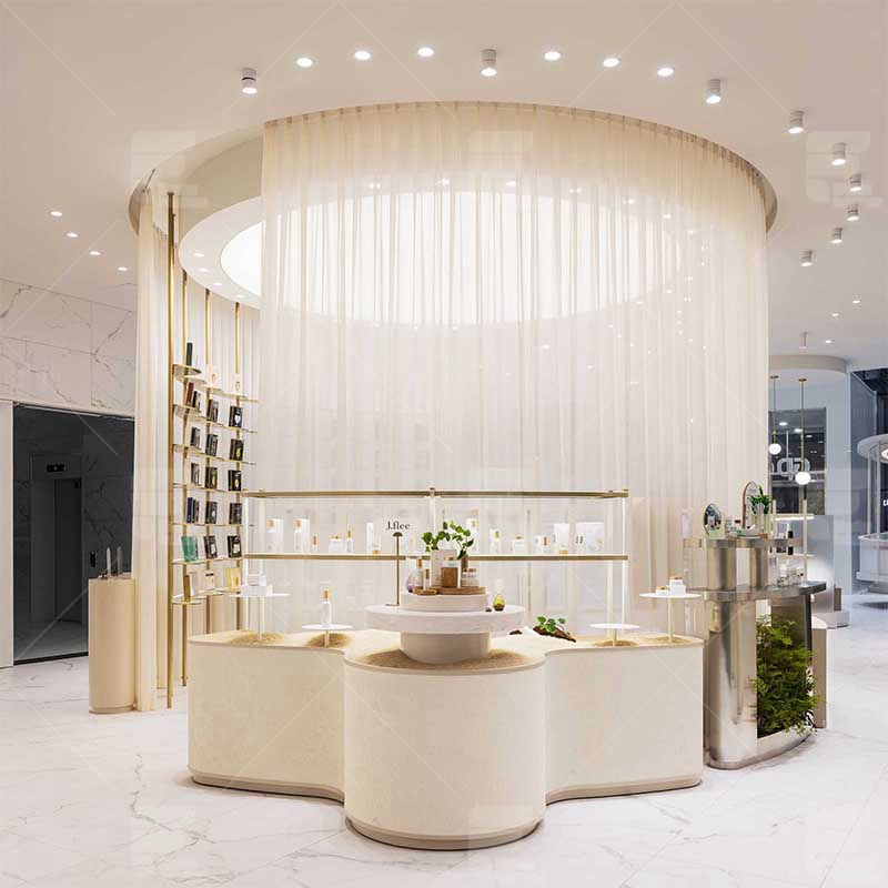 Vendita al dettaglio di lusso personalizzato Display in legno decorazione negozio di profumi Interior Design personalizzato negozio di profumi Design per piccolo negozio di cosmetici
