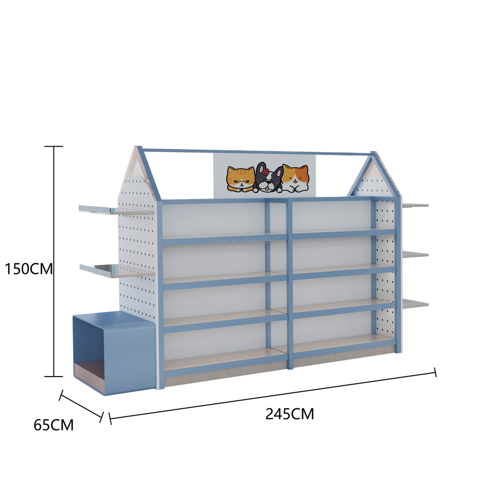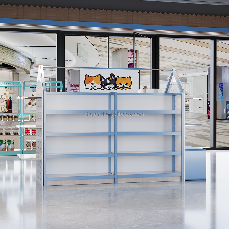 Retail Pet Food Toys Shop Display Shelves Snake Counter Popup Store Lovely Blue Color for Pets Store Interior Design
