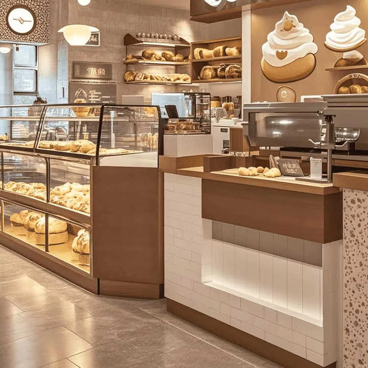 Retail Wooden Bakery Bread Display Cabinet Hot Cake Store Fixtures Custom Bakery Shop Interior Design Bakery Display
