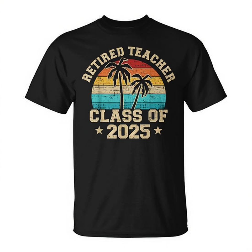 Maglietta vintage per insegnanti in pensione della classe del 2025, unisex, girocollo, manica corta, regalo per la pensione scolastica