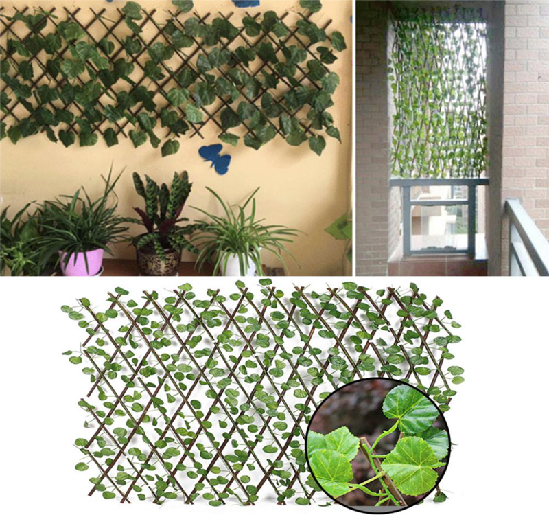 Retractable Artificial Garden Fence Wood Vines Climbing Frame Gardening Plant Fence Vegetable Plant Decor Greenery Walls 40a