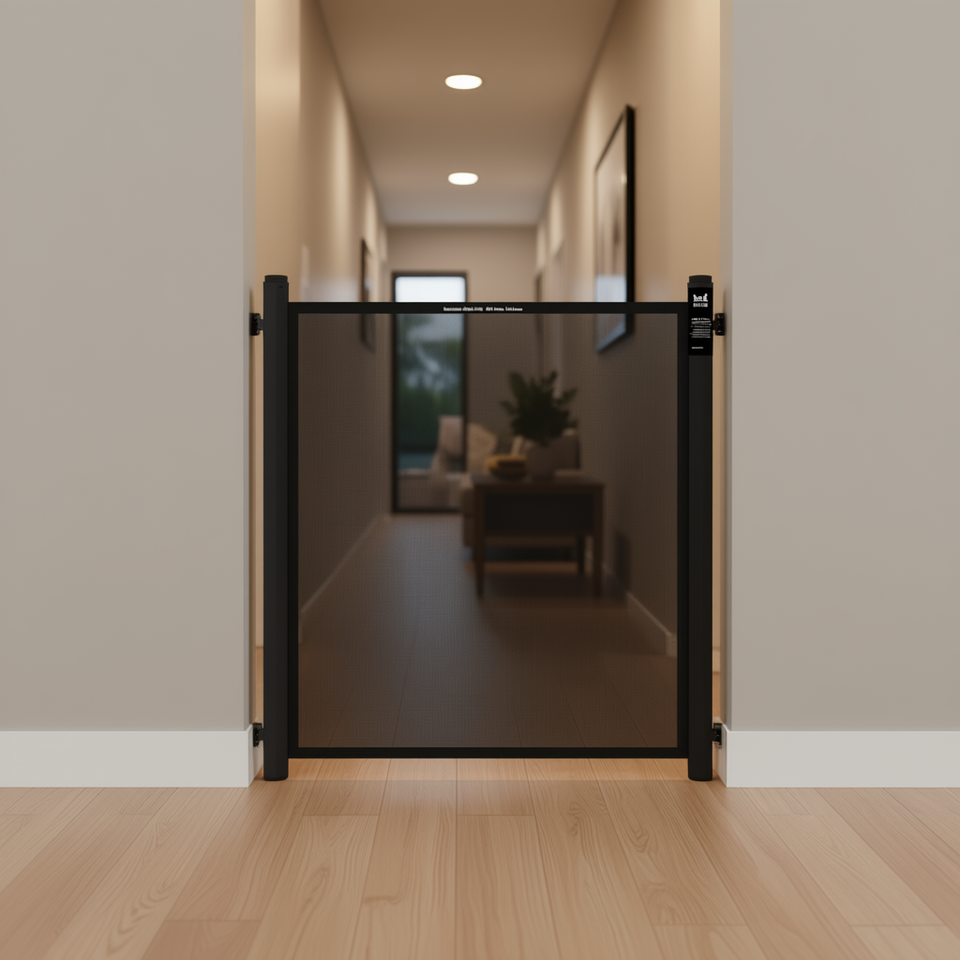 Retractable Black Pet Gate 32.5 X 49.2 Inches For Pens And Divisions Indoor Use