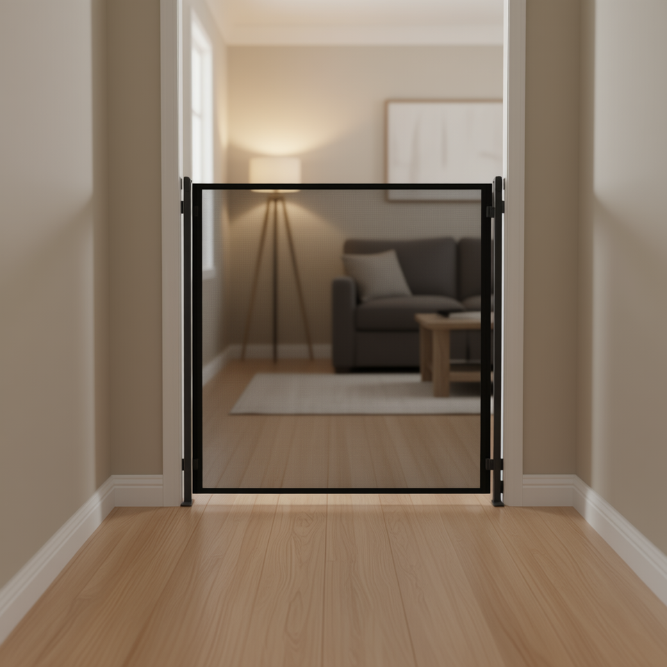Retractable Black Pet Gate 40.4x49.2 In With Folding Feature For Indoor Pets