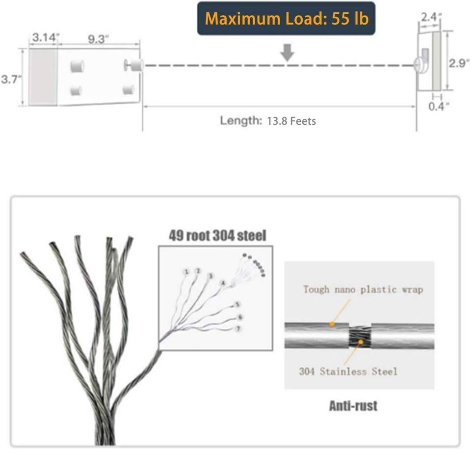 Stendibiancheria Retrattile da Interno con Doppia Corda Regolabile in Acciaio Inossidabile, 4,2 Metri