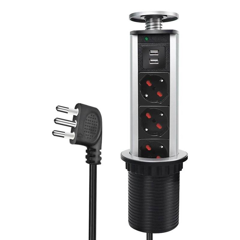 Multipresa da Scrivania Retrattile con 6 Prese AC, 2 USB 2.1A, 3 Prese Universali 10/16A, Protezione per Colonna da Tavolo per WiFi