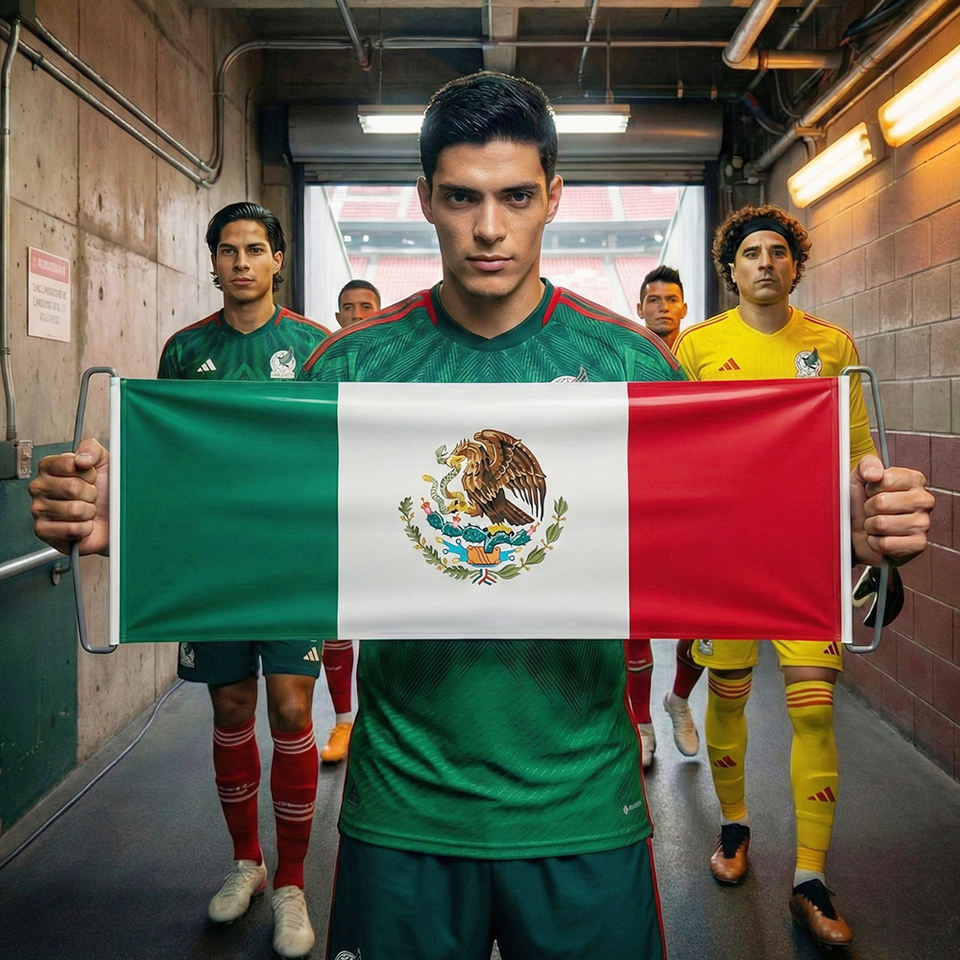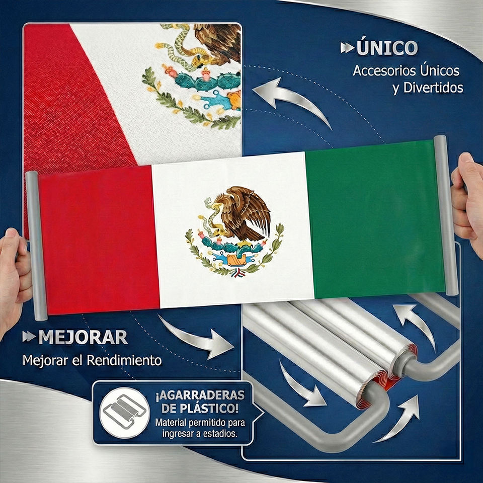 Bandiera Retrattile del Messico, Accessorio per Feste, Tessuto Oxford 600D, Colori Verde/Bianco/Rosso, Design Moderno