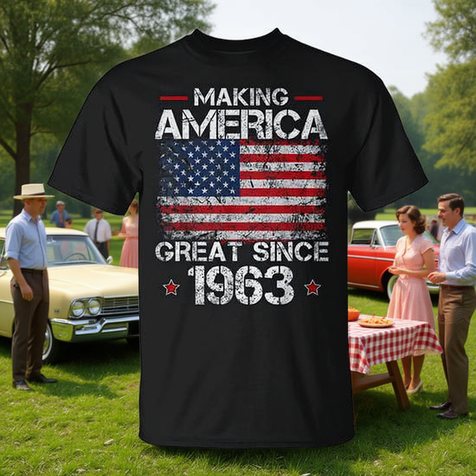 T-shirt retrò per il 60° compleanno per uomo e donna "Making America Great Since 1963" - Stile promozionale