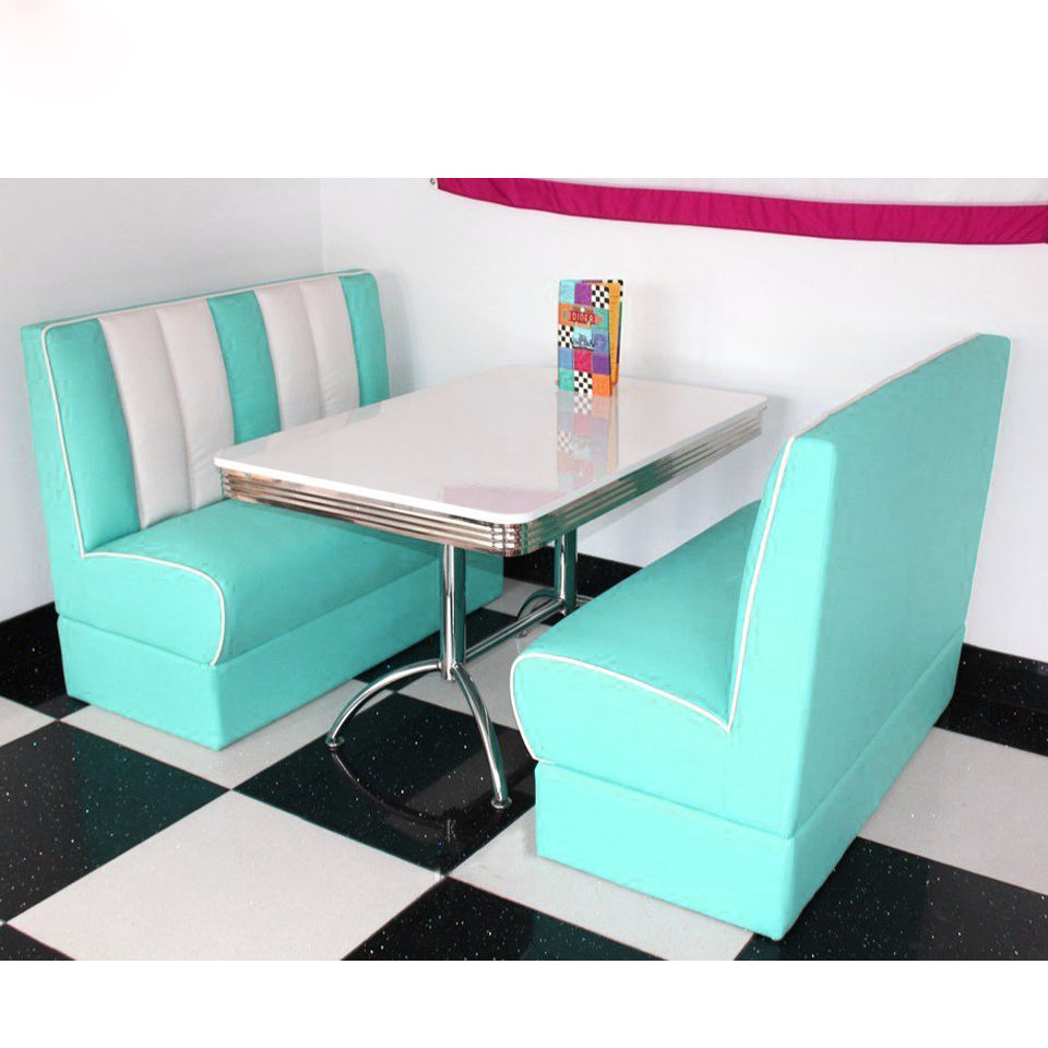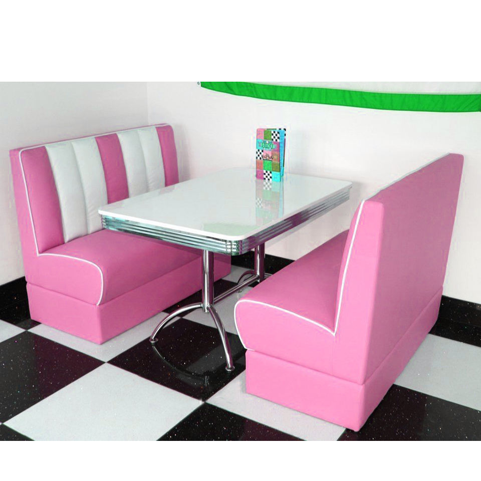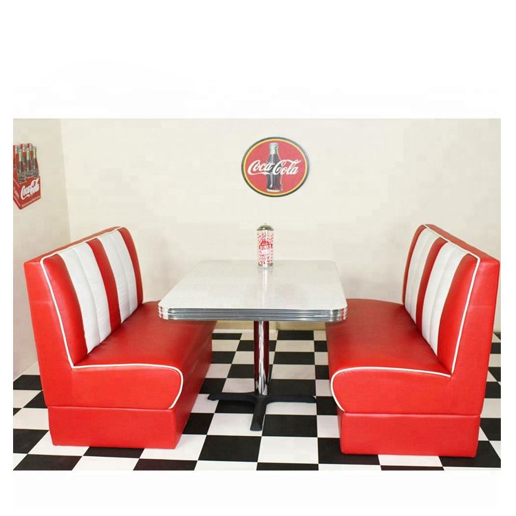 Set di Sedute per Diner Americano Retrò con Tavolo, Arredamento per Ristorante, Caffè, Hotel e Bar in Pelle PU Rossa e Bianca