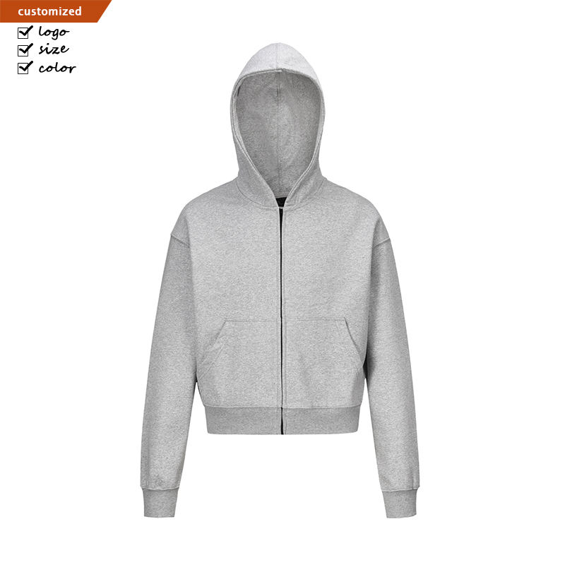 Retro americana alla moda felpa con cappuccio larga e corta da uomo con Design High Street felpa in puro colore con cerniera 100% cotone invernale