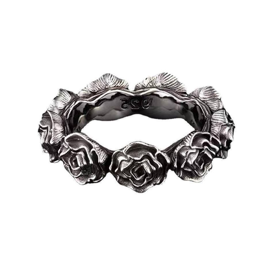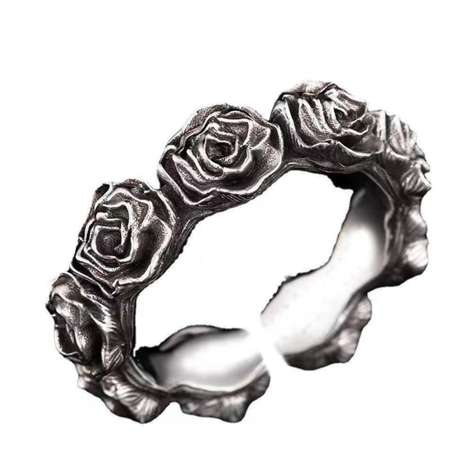 Retro Antique Silver Black Knight Rose Opening Ring for Men Women Flower Adjustable Rings Jewelry