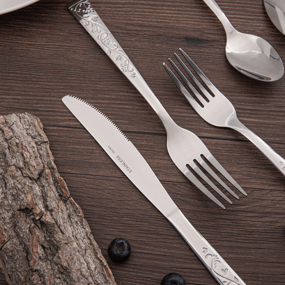 Retro Carved Stainless Steel Knives and Forks: a Set of Aesthetic Tableware for a Light Luxury Dining Table