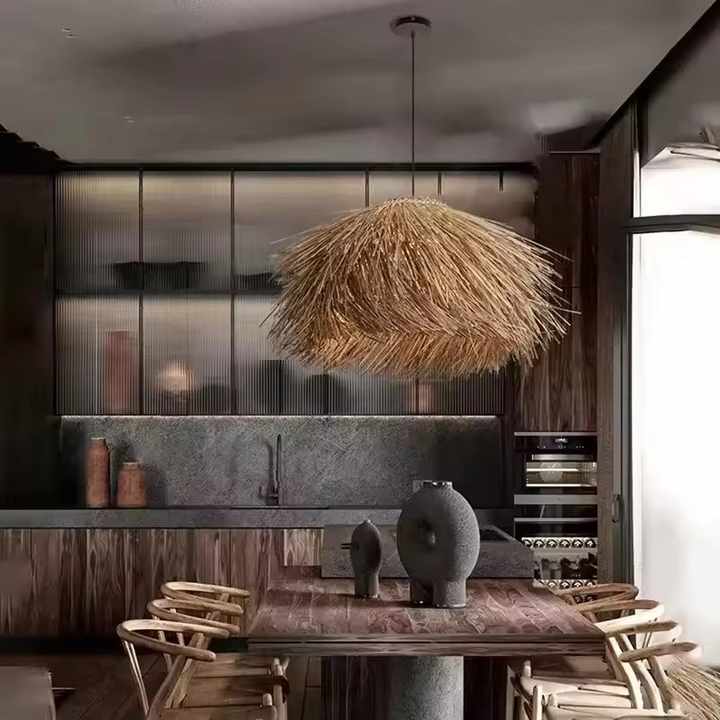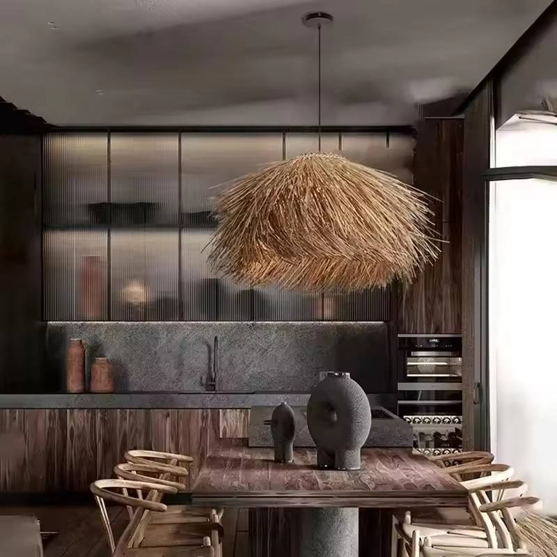 Nome:Lampadario LED in Stile Wabi Sabi con Illuminazione a Sospensione in Rattan