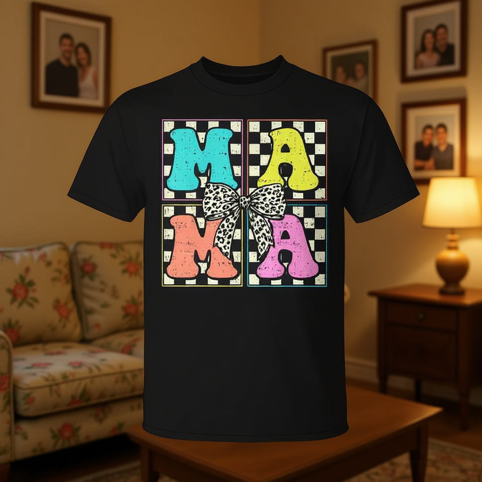 T-Shirt Retrò a Quadretti con Fiocco Coquette per la Festa della Mamma, Edizione Limitata, Regalo Promozionale