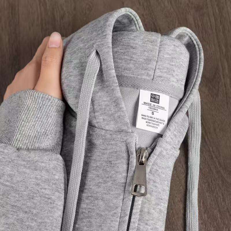 Felpa con Cappuccio e Zip in Cotone Grigio Stile Retrò, Alta Grammatura, Unisex, Autunnale, Stile Americano, Casual, Vestibilità Ampia