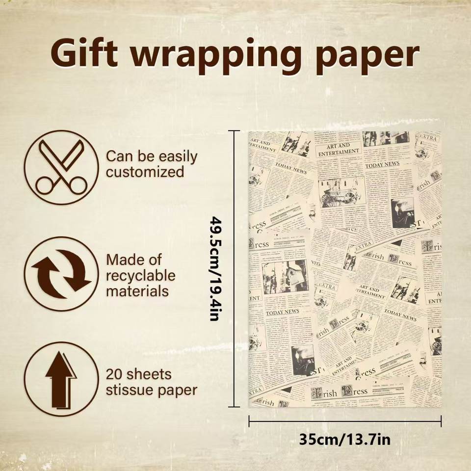 Carta da Imballaggio in Pelle Bovina Stile Giornale Inglese Retrò. La scelta ideale per confezioni regalo e floreali in stile artistico. Aggiunge una Forte Resistenza
