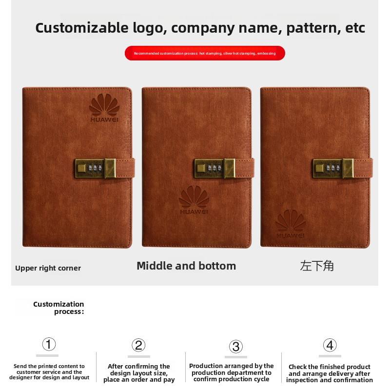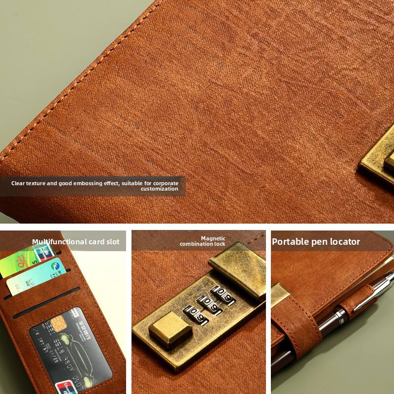 Retro creativo A5 diario dello studente taccuino in pelle ispessita copertina Password Book con serratura copertina rigida cancelleria