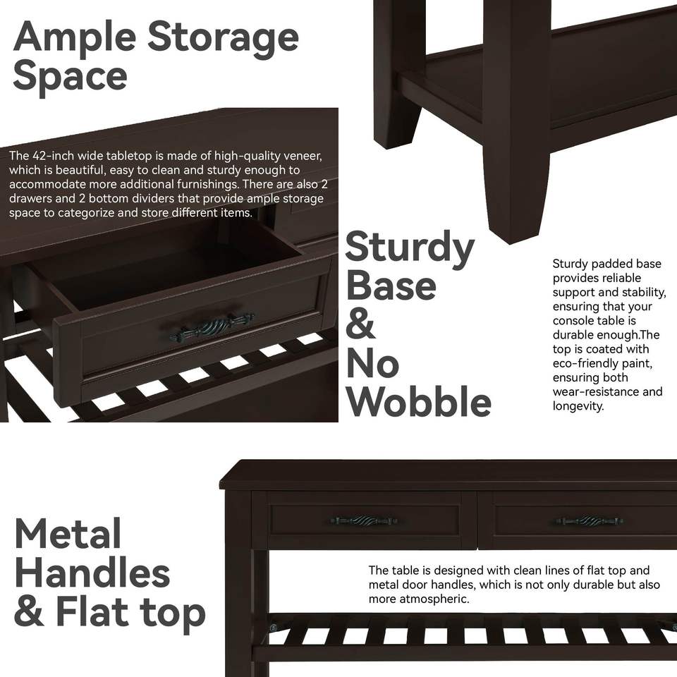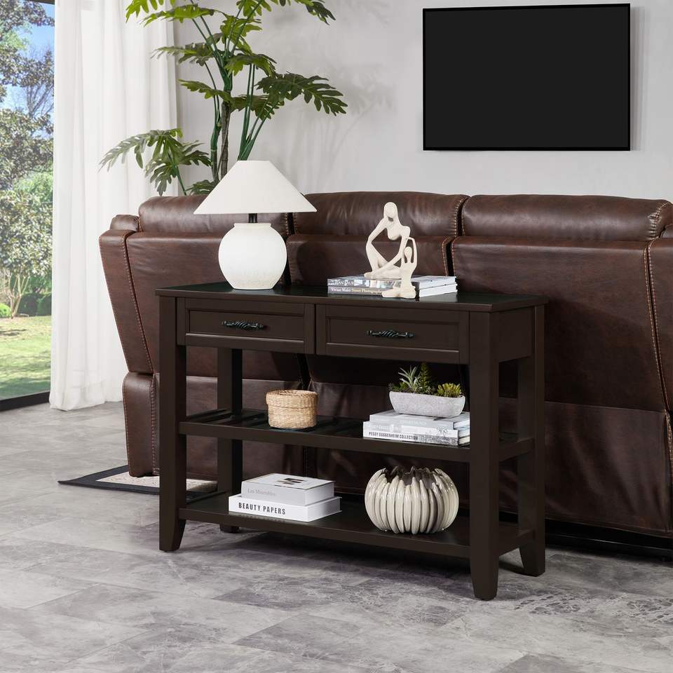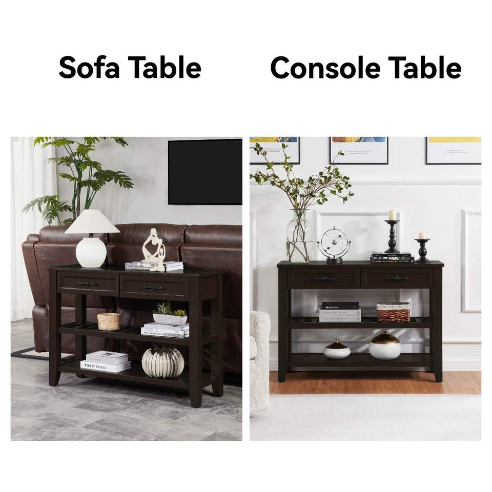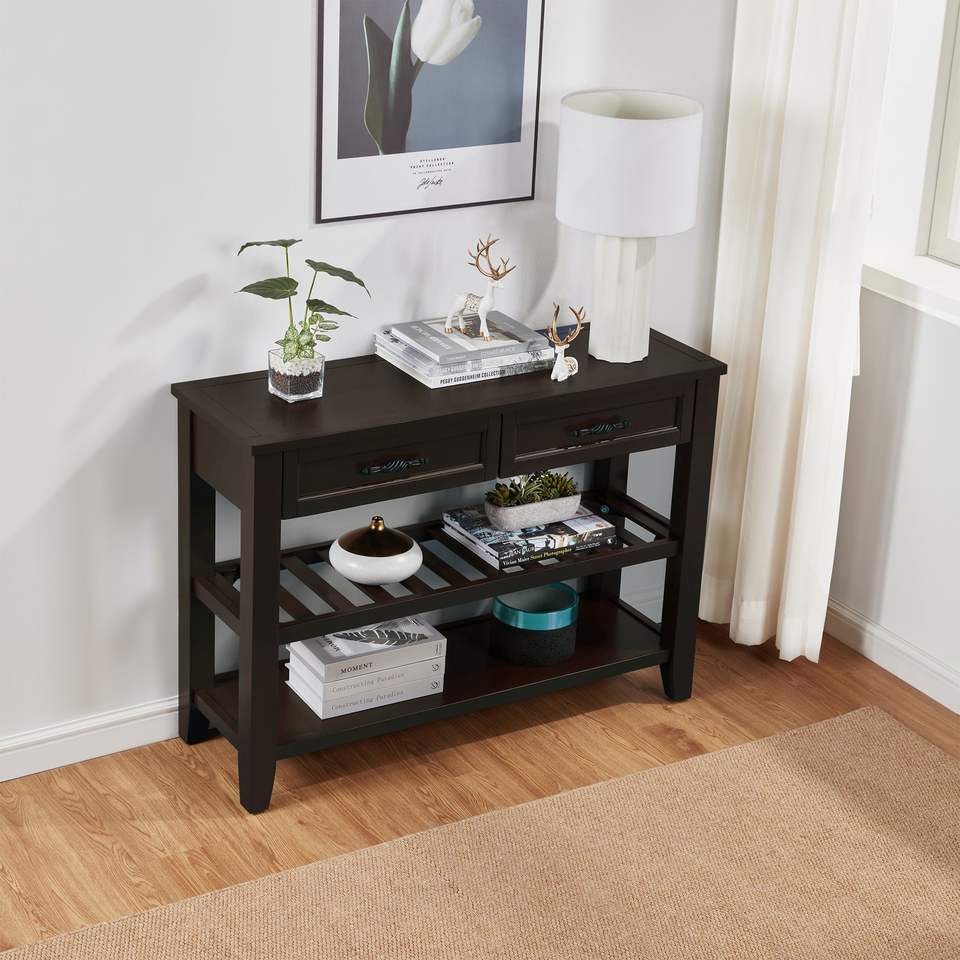 Consolle in Legno Massello di Pino dal Design Retrò con Ripiani Aperti e Gambe per Arredamento Soggiorno