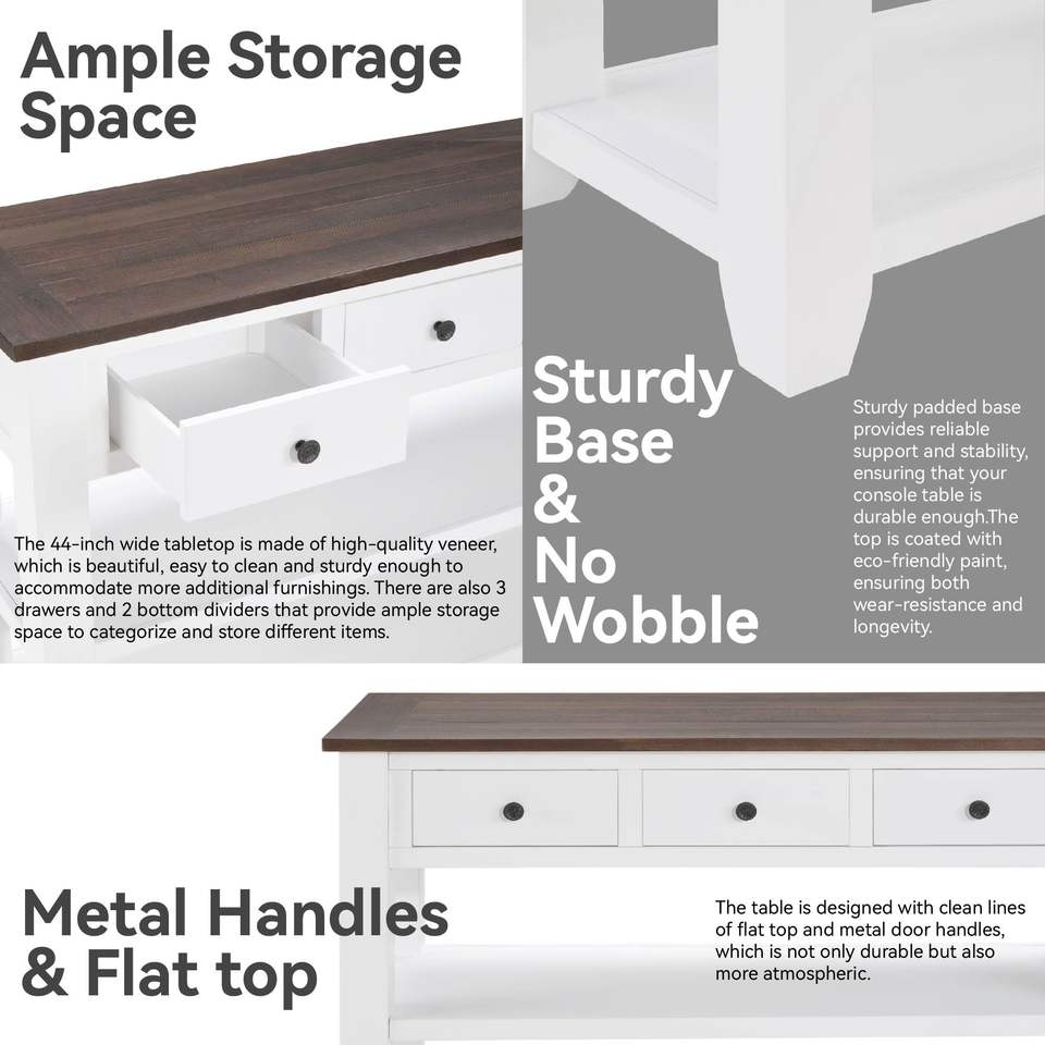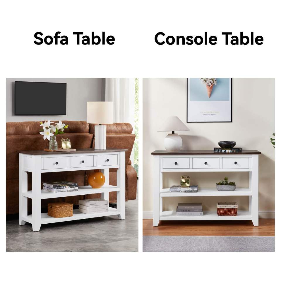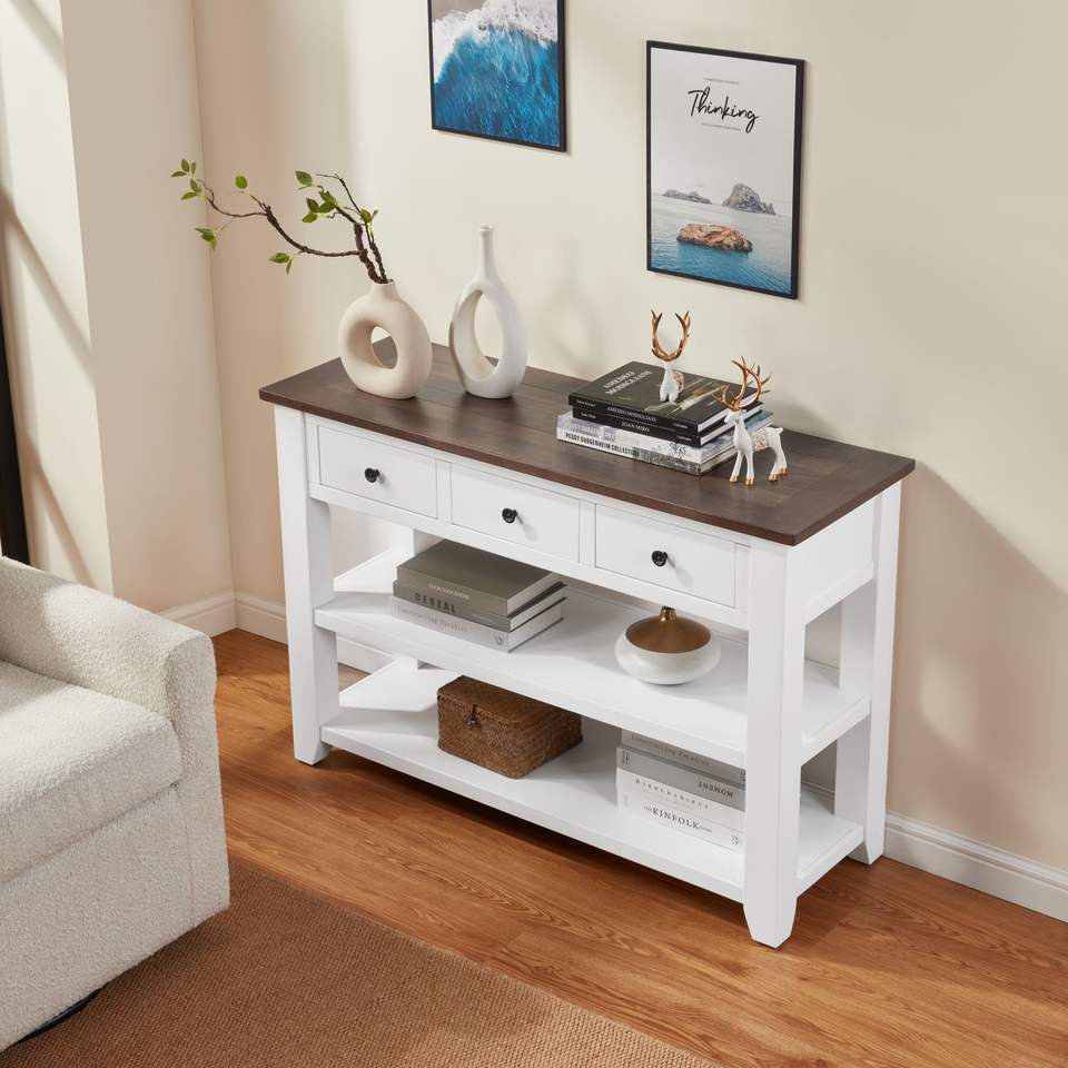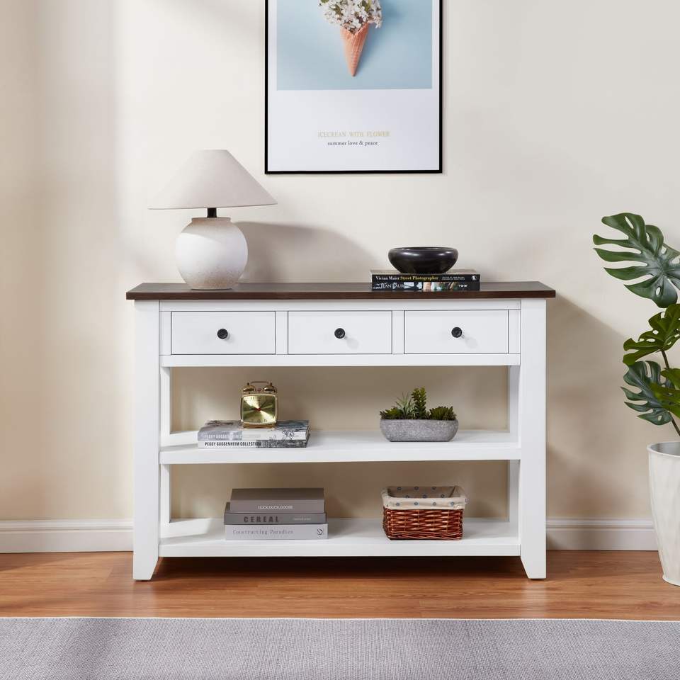 Consolle in Legno Massello di Pino dal Design Retrò con Ripiani Aperti e Gambe per Arredamento Soggiorno