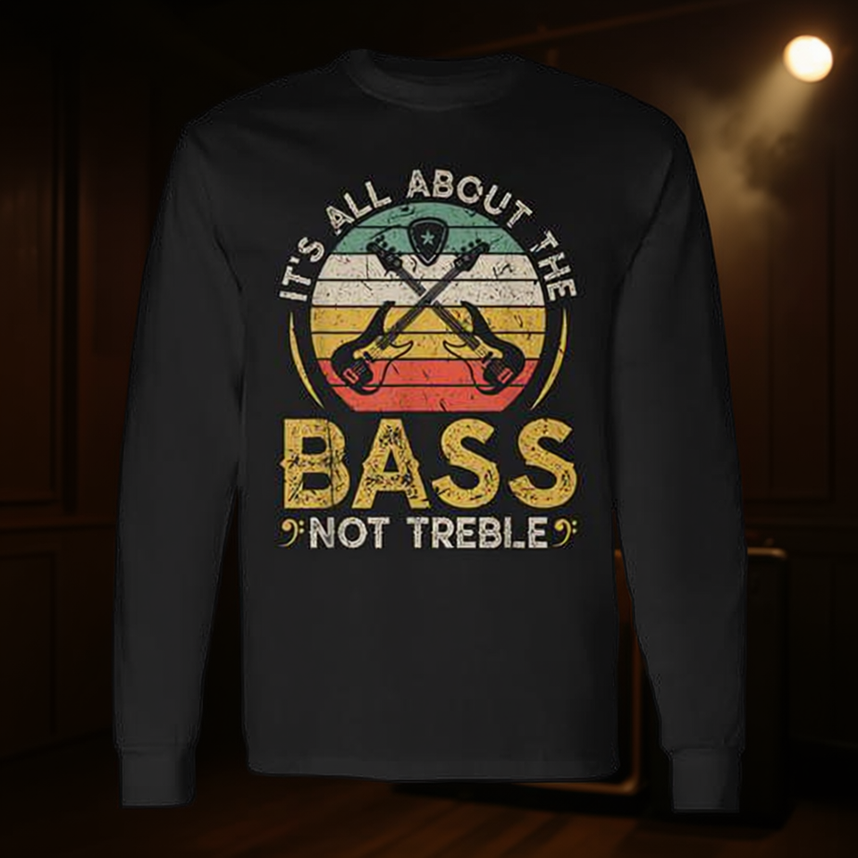 Maglietta a Maniche Lunghe per Chitarristi di Basso Elettrico Retrò - Tutto è Sopra Tutto il Basso - Prodotto Promozionale