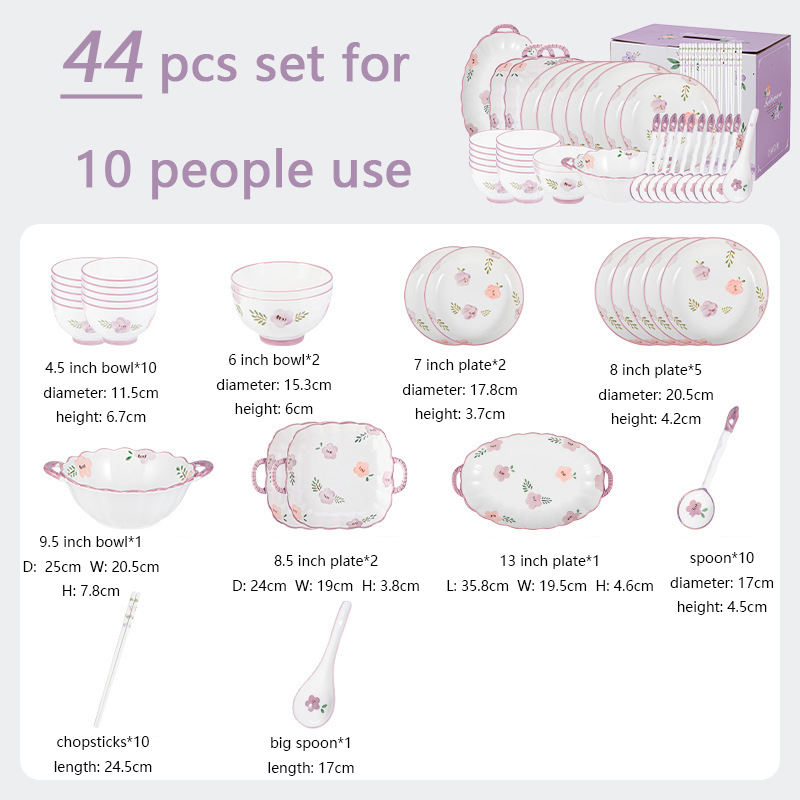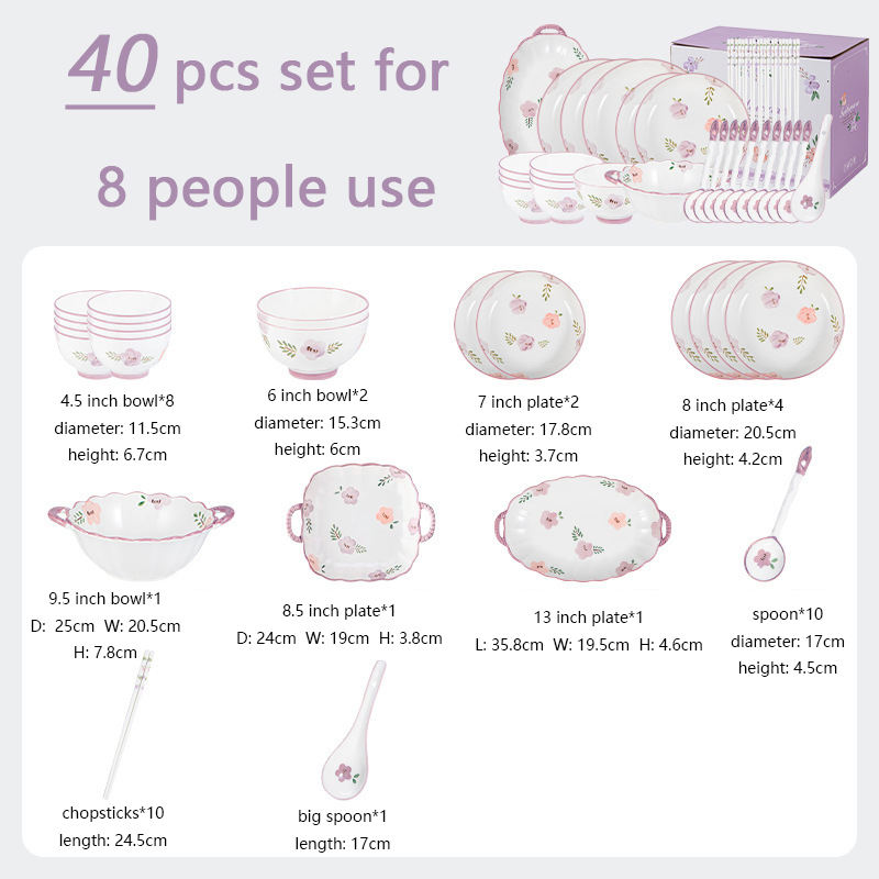 Set di stoviglie in ceramica viola fiore elegante retrò cucina in porcellana cucina cucina ristorante Hotel piatti ciotole e cucchiai