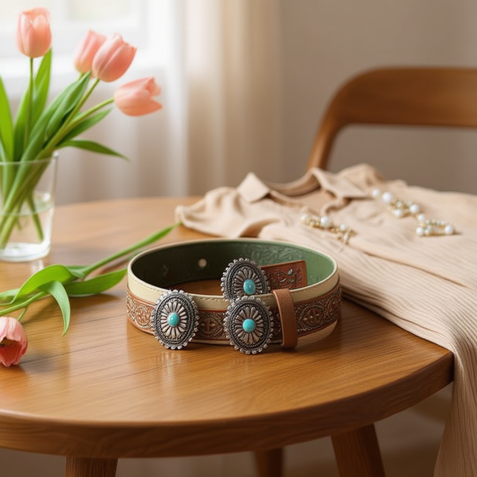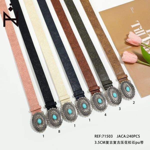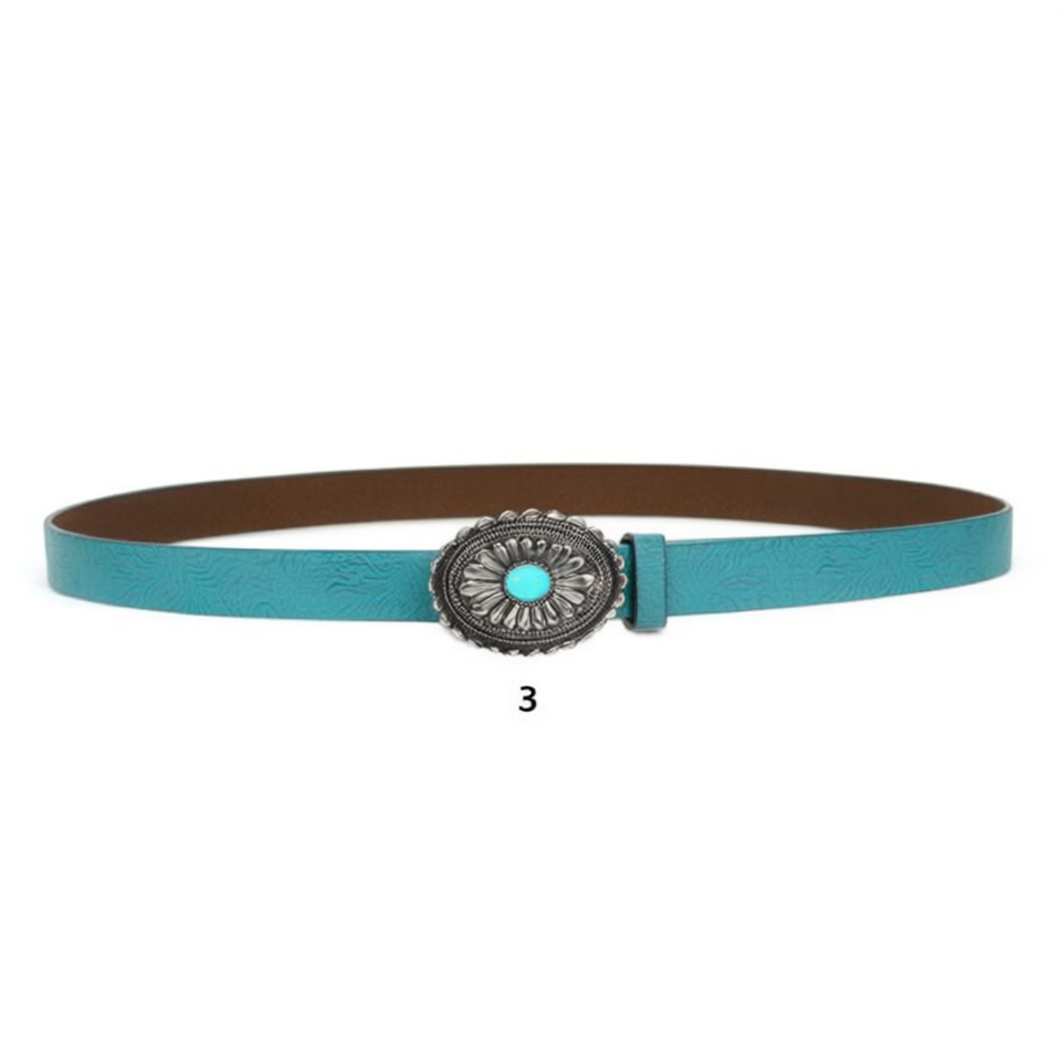 Cintura retrò in PU turchese goffrato da 3,5 cm per donna, accessorio moda