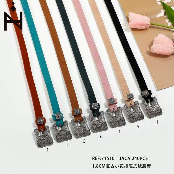 Cintura in camoscio con fibbia floreale retrò da 1,8 cm per donna, cintura alla moda