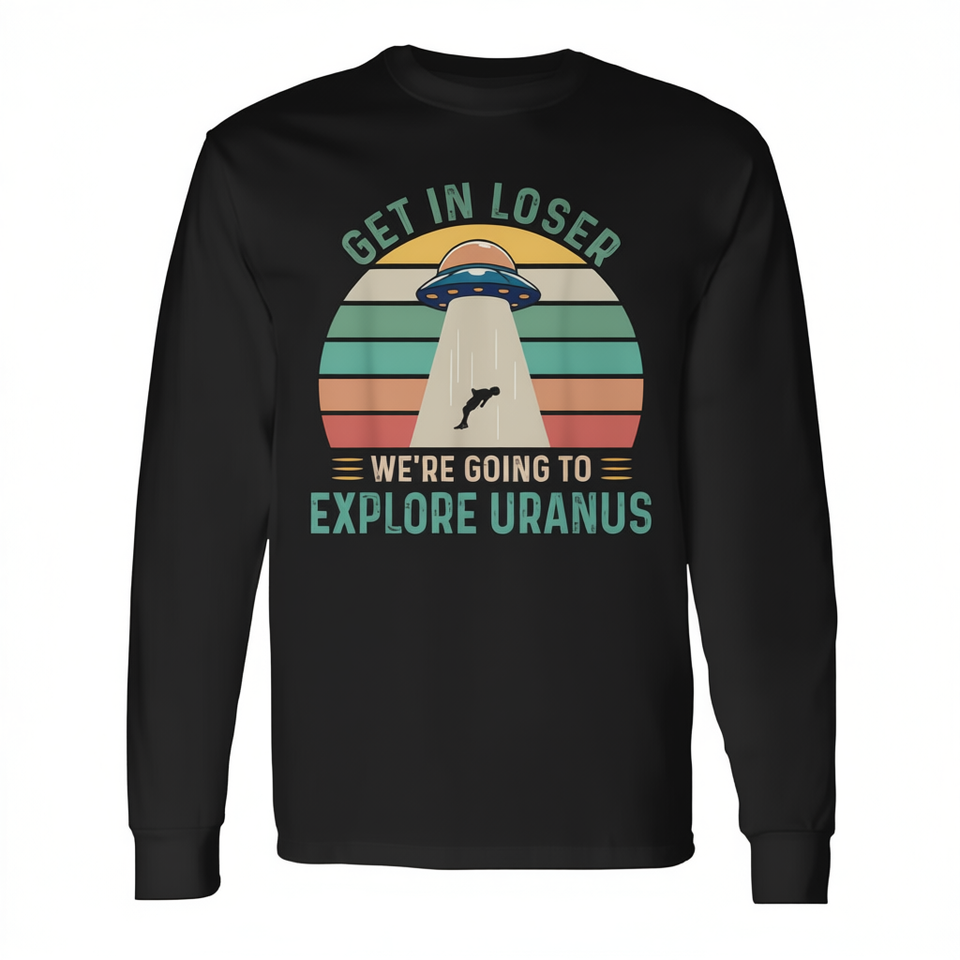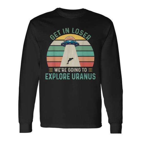 Maglietta a maniche lunghe retrò Get In Loser We're Going To Explore Uranus Alien UFO