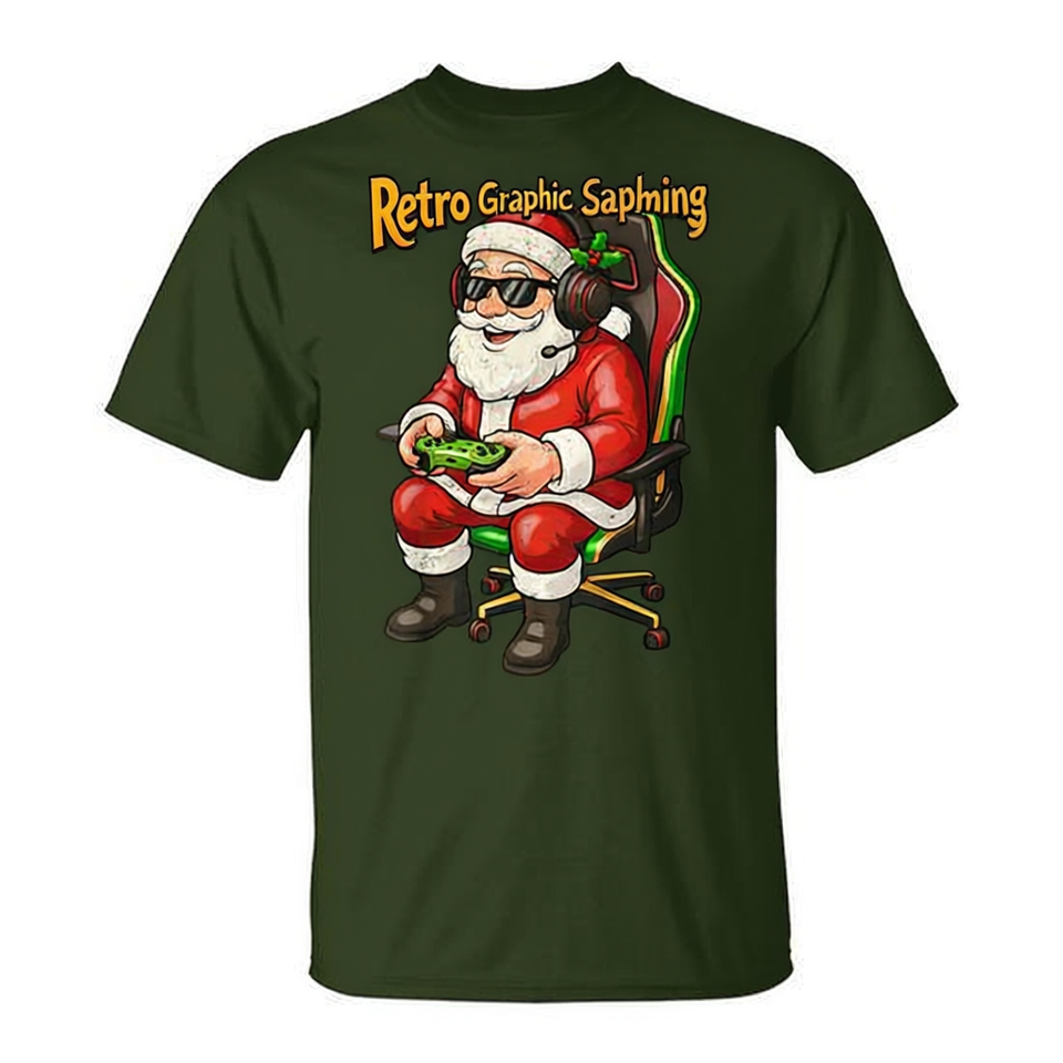 T-shirt da ragazzo con grafica retrò di Babbo Natale, per il gioco di Natale