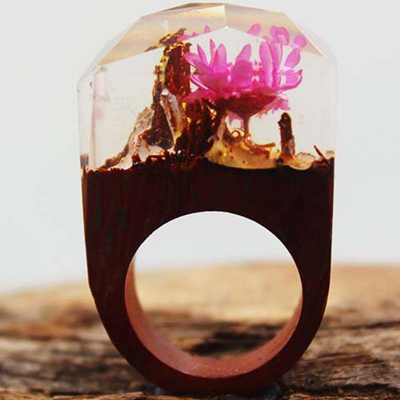 Retrò Gioielli Fatti A Mano In Legno Grezzo Fiore Della Resina Anello da Uomo