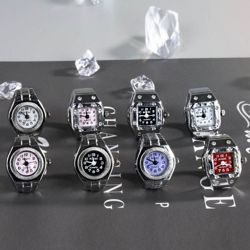 Retro Hiphop anello da dito orologio elastico quadrante quarzo Y2K argento Mini anello orologio uomo donna