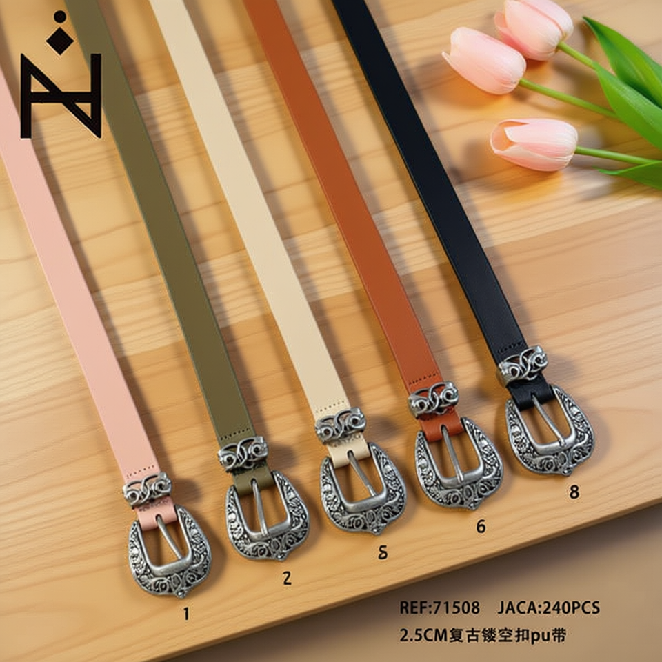 Cintura da Donna Retrò con Fibbia Traforata in PU 2,5 Cm Accessorio di Moda
