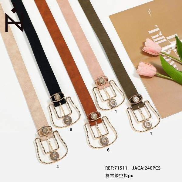 Retro Hollow-out Buckle Pu Strap Belt 3.8Cm Women Fashion Accessory