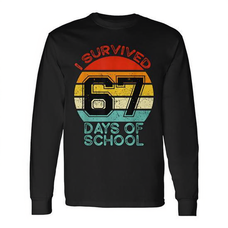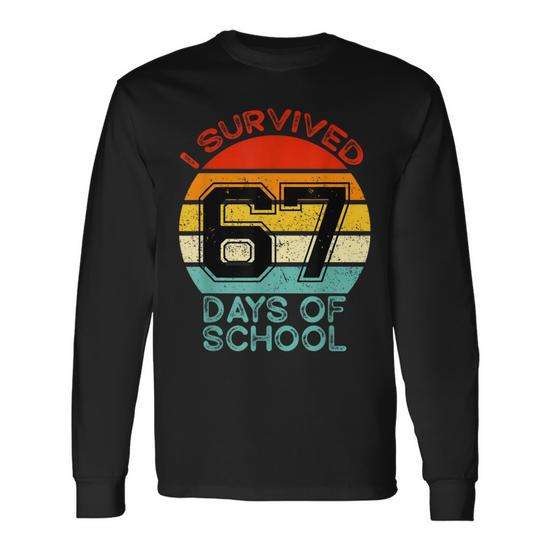 Maglietta retrò a maniche lunghe con stampa “Sono sopravvissuto a 67 giorni di scuola” per insegnanti e studenti
