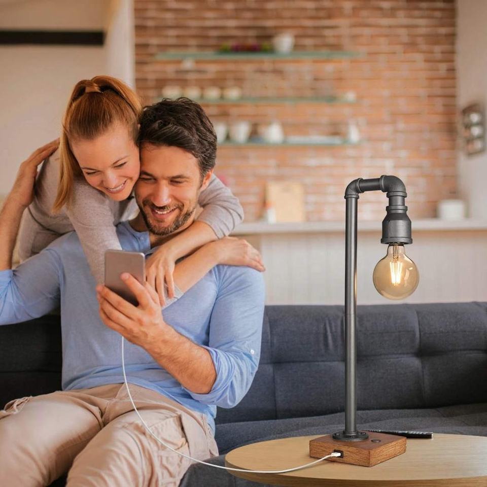 Lampada a tubo dell'acqua in stile industriale retrò con porta del caricatore USB e interruttore tattile rustico lampada da tavolo elettrica AC