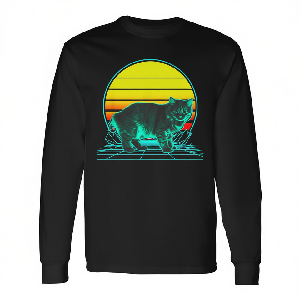 Maglietta a maniche lunghe Retro Manx Cat Vaporwave