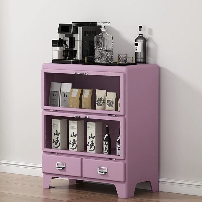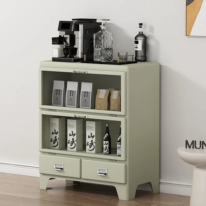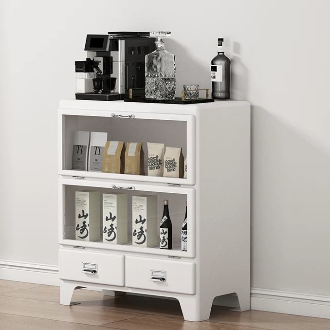 Mobile buffet retrò in metallo bianco con anta in vetro per chicchi di caffè, liquori ed essenziali da cucina