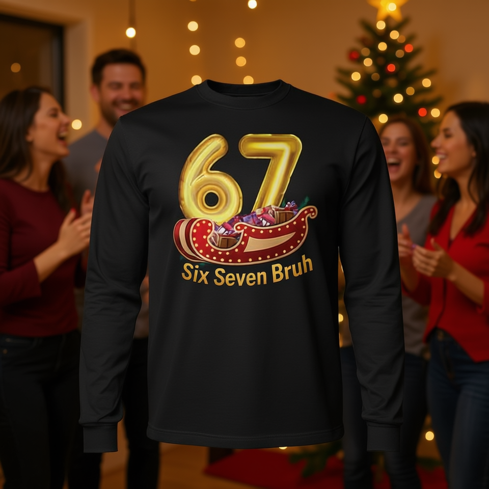 Maglietta a Maniche Lunghe con Motivo Numerico Retrò, Unisex per Adulti, Collo Tondo, Design con Stampa Digitale Geometrica Astratta