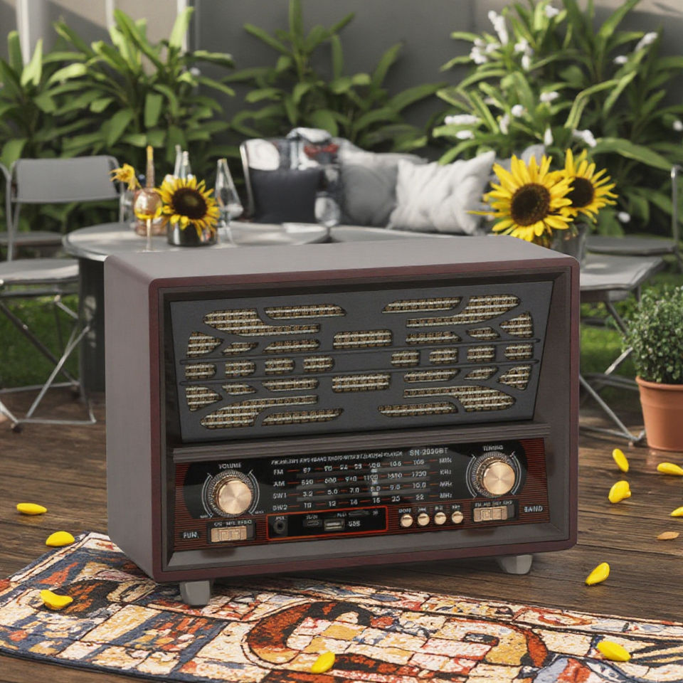 Rétro esterno 4 Band FM/AM/SW1-2 Radio in legno con Bluetooth & lettore musicale per i consumatori