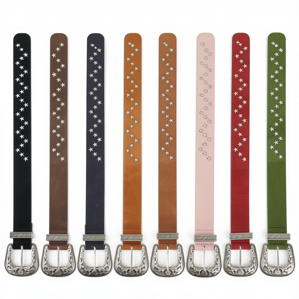 Cintura Retrò con Fibbia Ovale e Stella a Cinque Punte 3,8 Cm Accessori Moda Donna Uomo