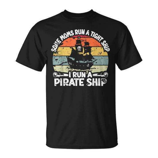 T-shirt retrò Pirate Mama con design al tramonto, girocollo, manica corta, unisex, per adulti, promozionale