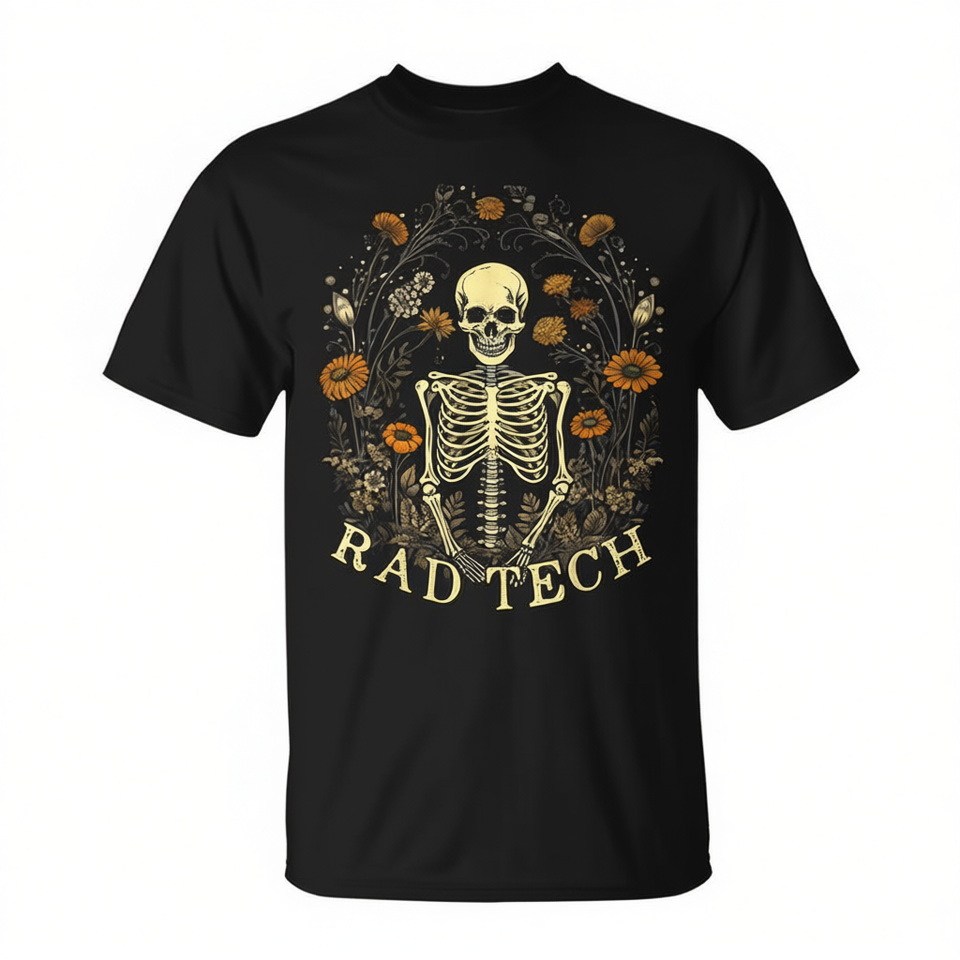 T-shirt Retro Rad Tech Skeleton Floral Radiology Technologist X-Ray