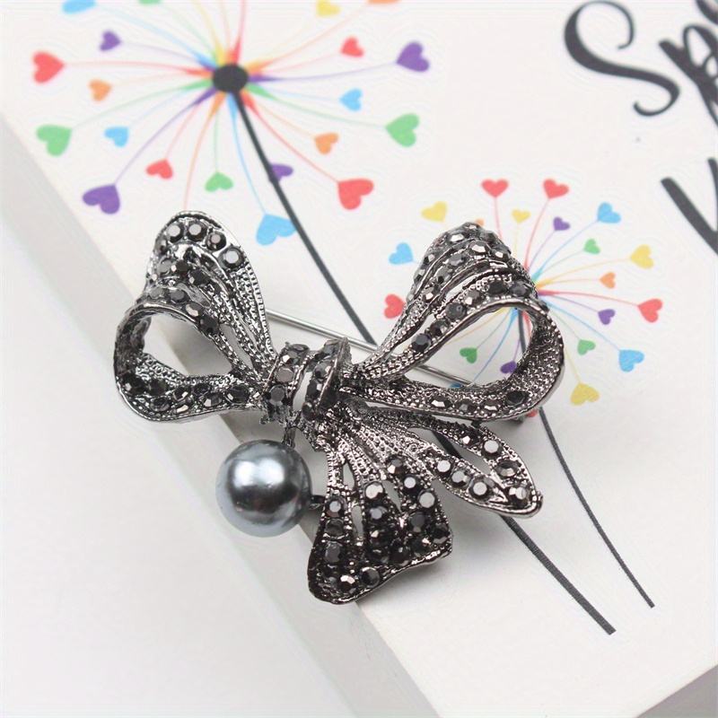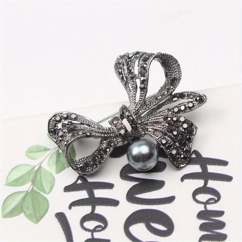 Spilla a fiocco retrò semplice, femminile, con strass scuri, accessorio per corsage, scialle, sciarpa e cappelli
