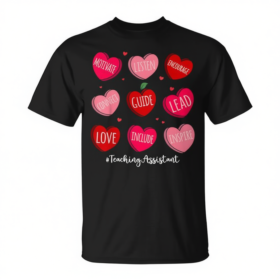 T-shirt da donna Retro Teaching Assistant Hearts per San Valentino