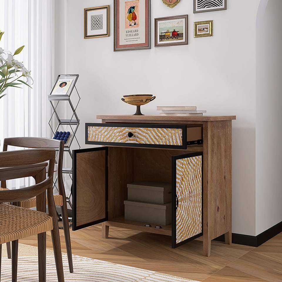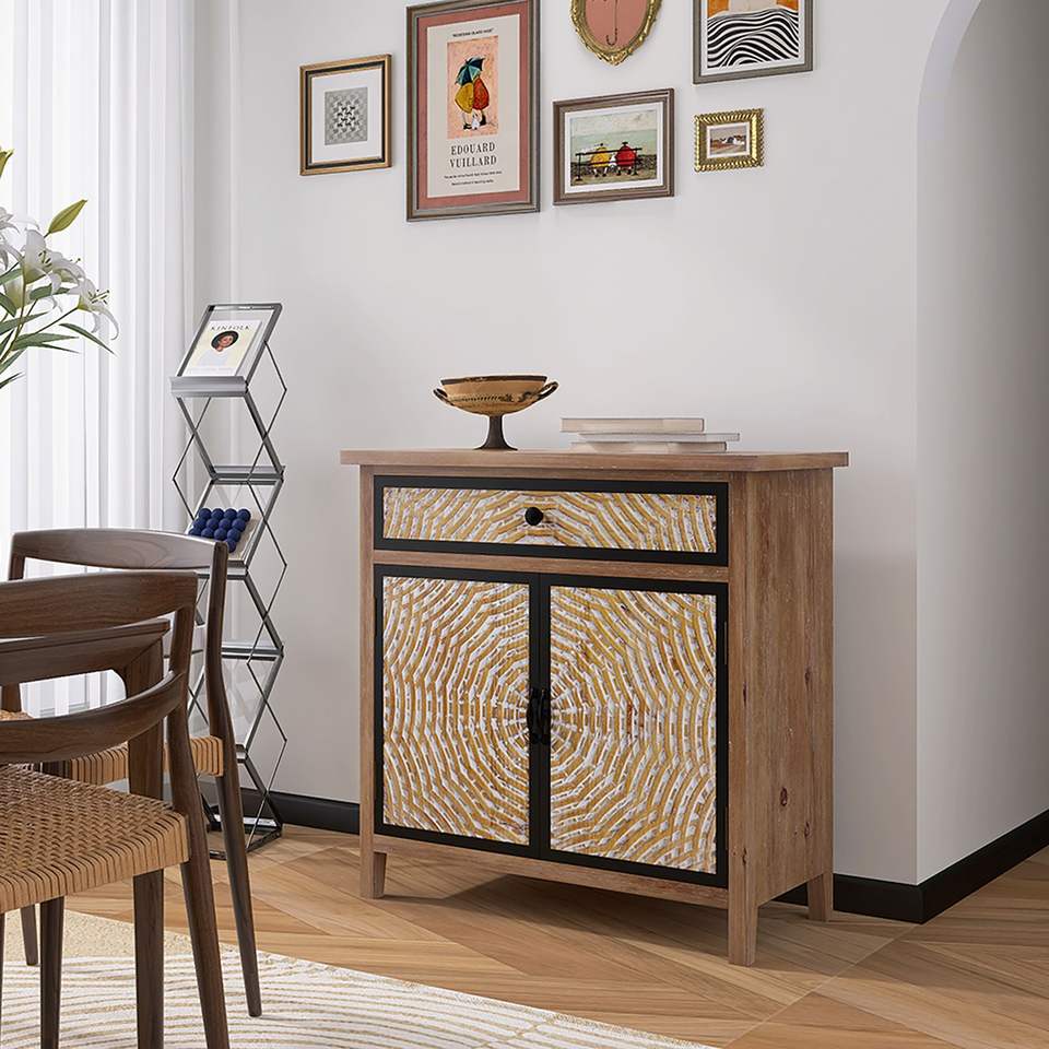 Credenza Vintage Retrò da Terra con Cassetti, Mobile Buffet per Ingresso e Soggiorno