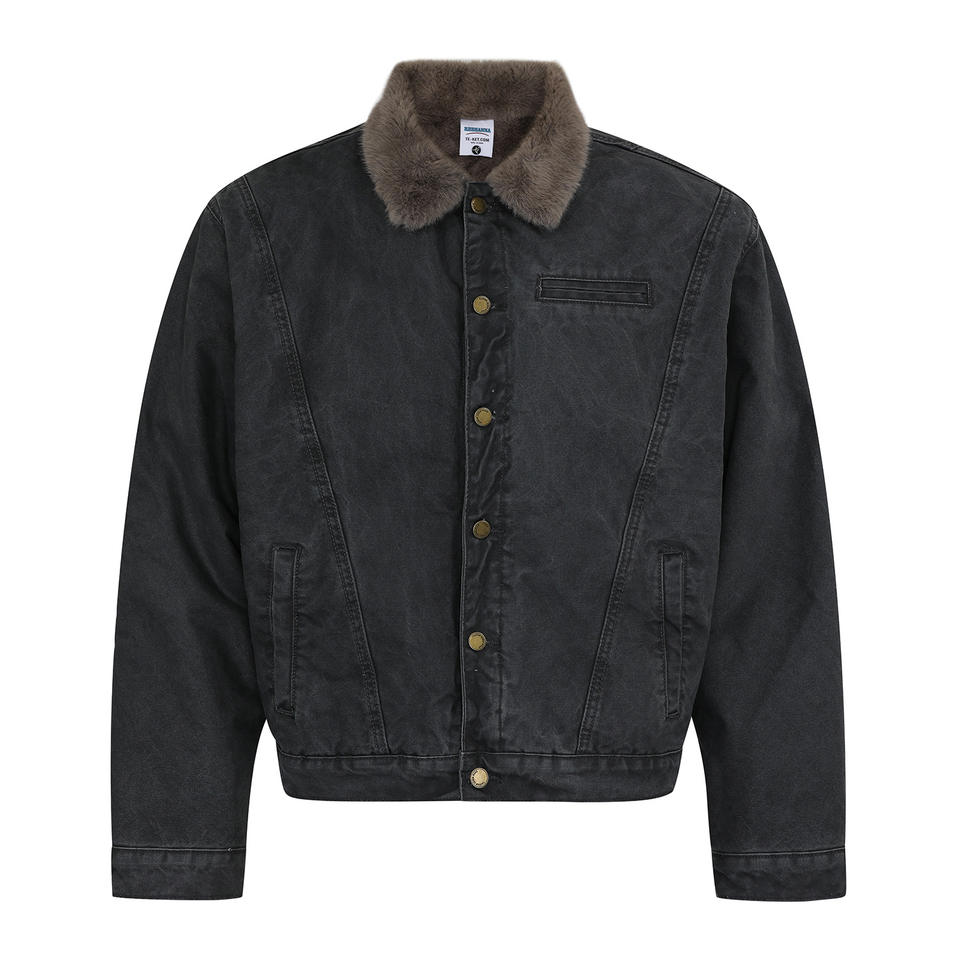 Giacca Bomber Invernale Retrò da Uomo, Design Vintage Lavato, Felpata e Ispessita, Calda, Streetwear con Stampa a Rilievo a Motivo Cuore