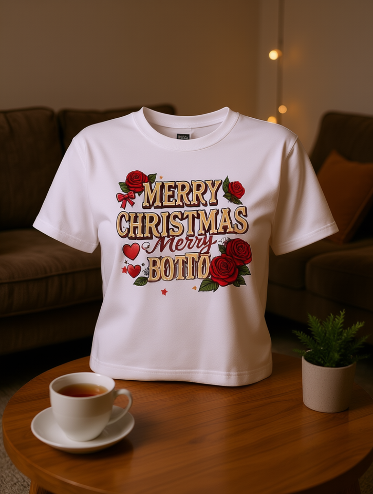 Retro Women's Crop T-Shirt Short Sleeve Round Neck Print Valentine's Day Christmas Casual Top 100% Cotton Jersey Spring Summer